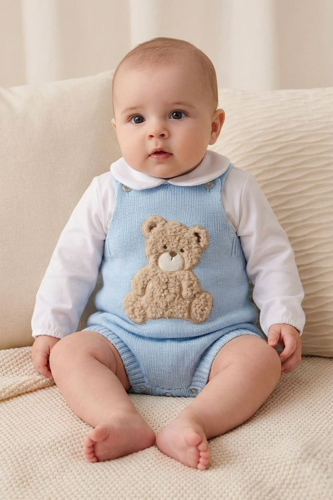 RILEY Boys Teddy Bear Romper in Blue