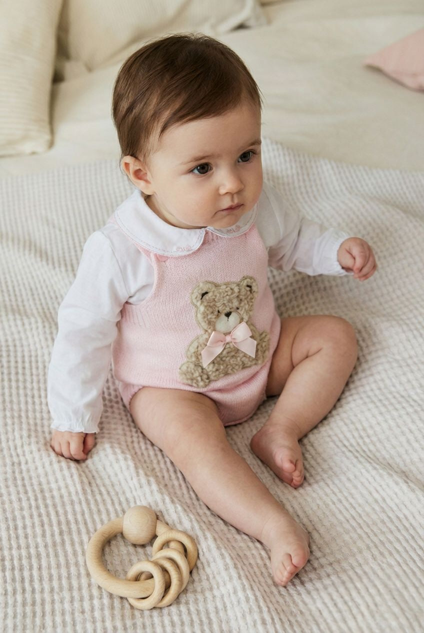 RILEY Girls Teddy Bear Romper in Pink